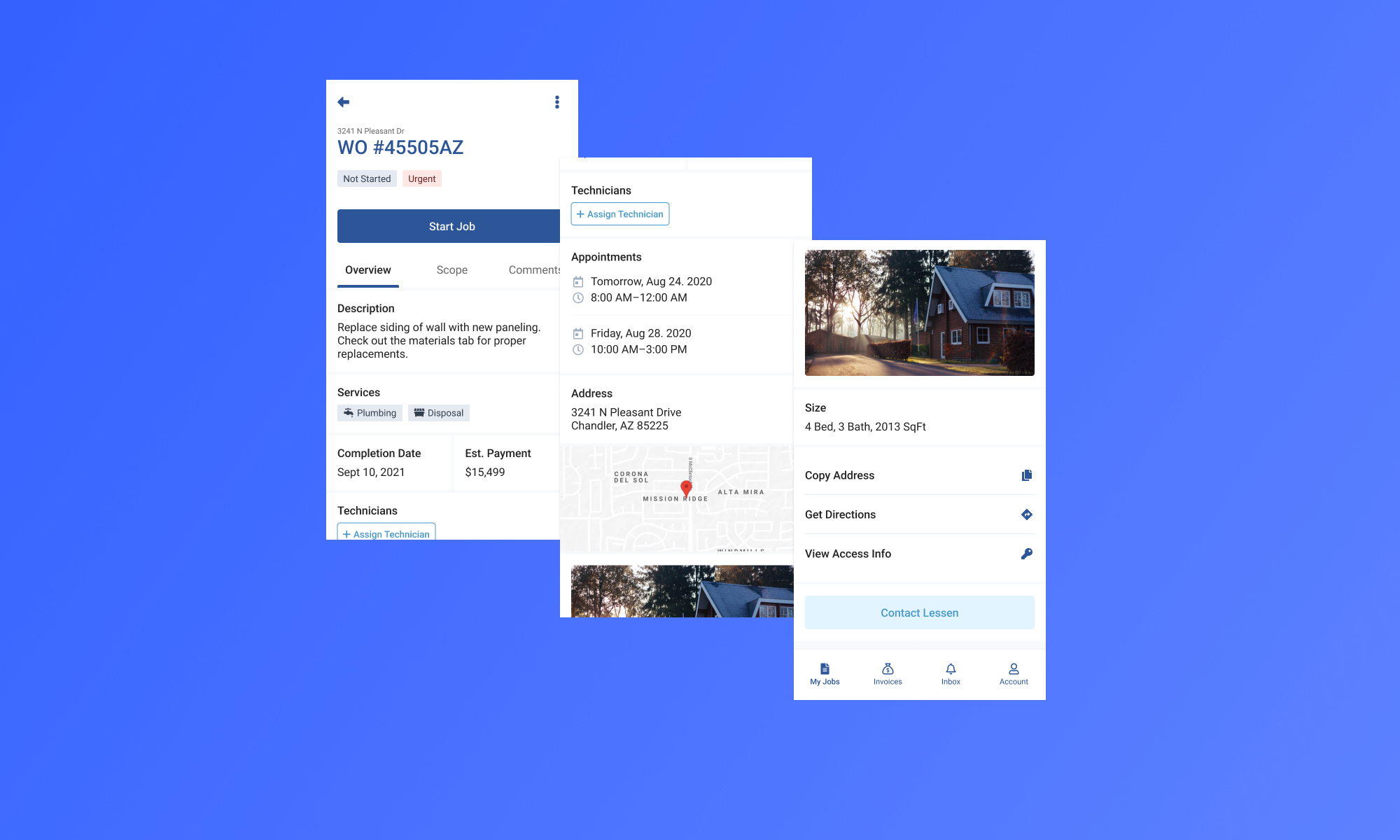 - Create a platform that allows service professionals (internal & external) to view, accept, complete, and get paid for work done for Lessen and its clients.