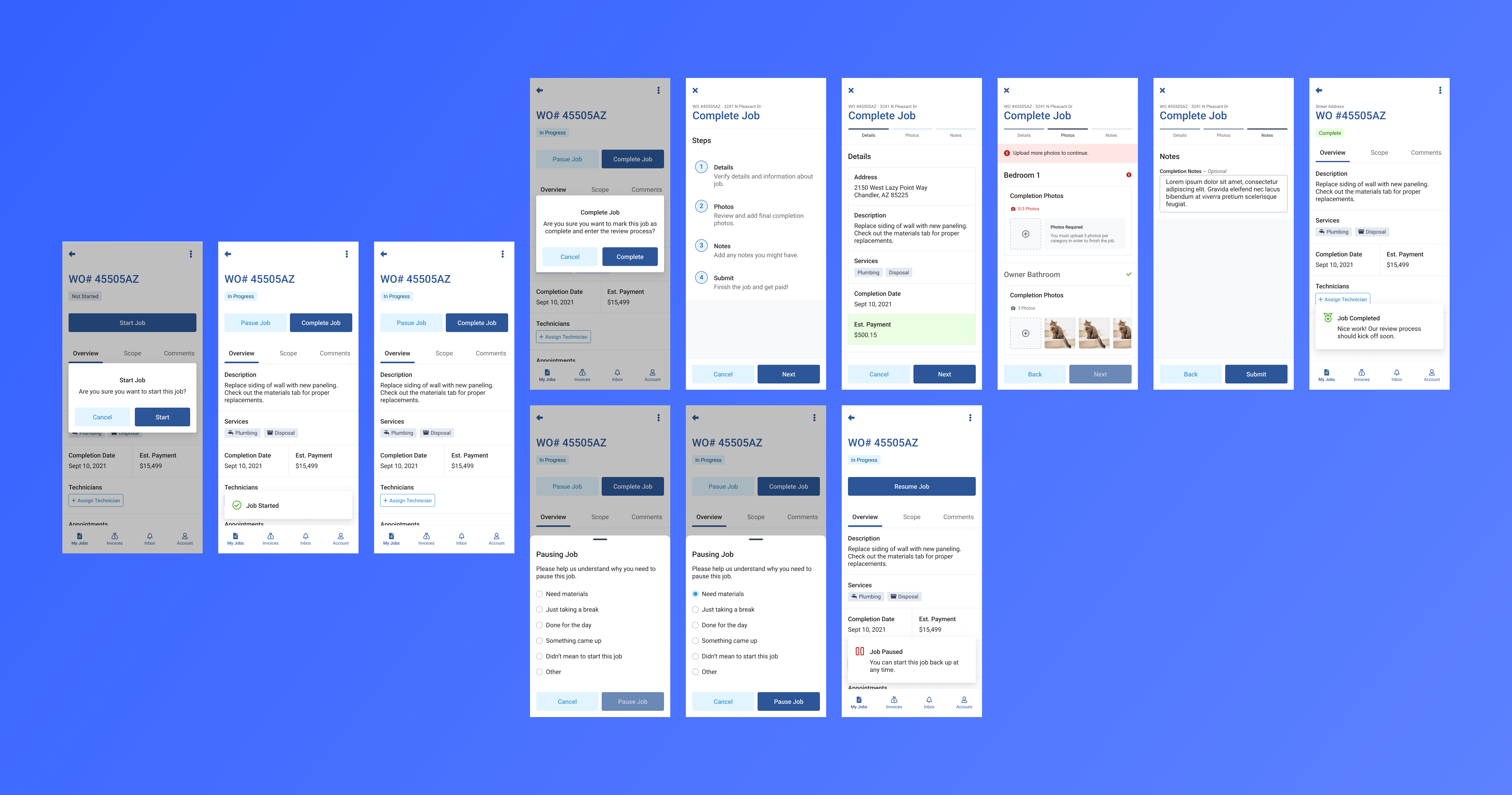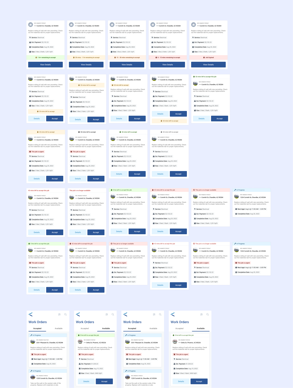 Overall, I am extremely proud and happy with what we put out. Very excited that the app I helped to deliver on facilitates thousands of people getting work, getting paid, and supporting themselves and their families. Below are some selected screens and flows from the app, just a small glimpse into the many great features we created for our users.