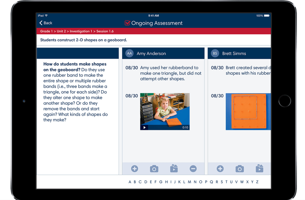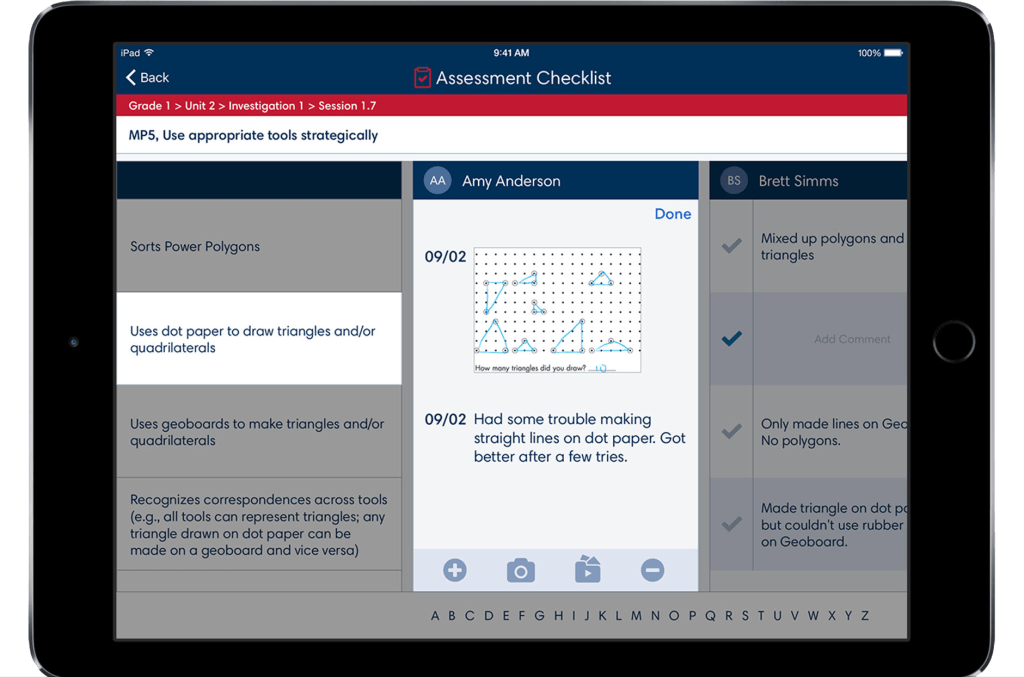 - Checking off observational checkpoints within a lesson relating to a particular student.