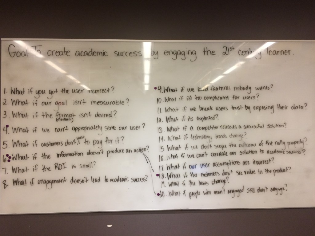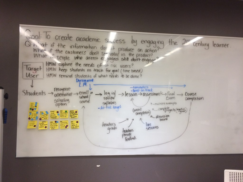 Below you’ll find some images and information about the sprint that we completed to help us find a solution to a new product that Strongmind was trying to develop that faced the main question of – “How do you engage the disengaged learner?”