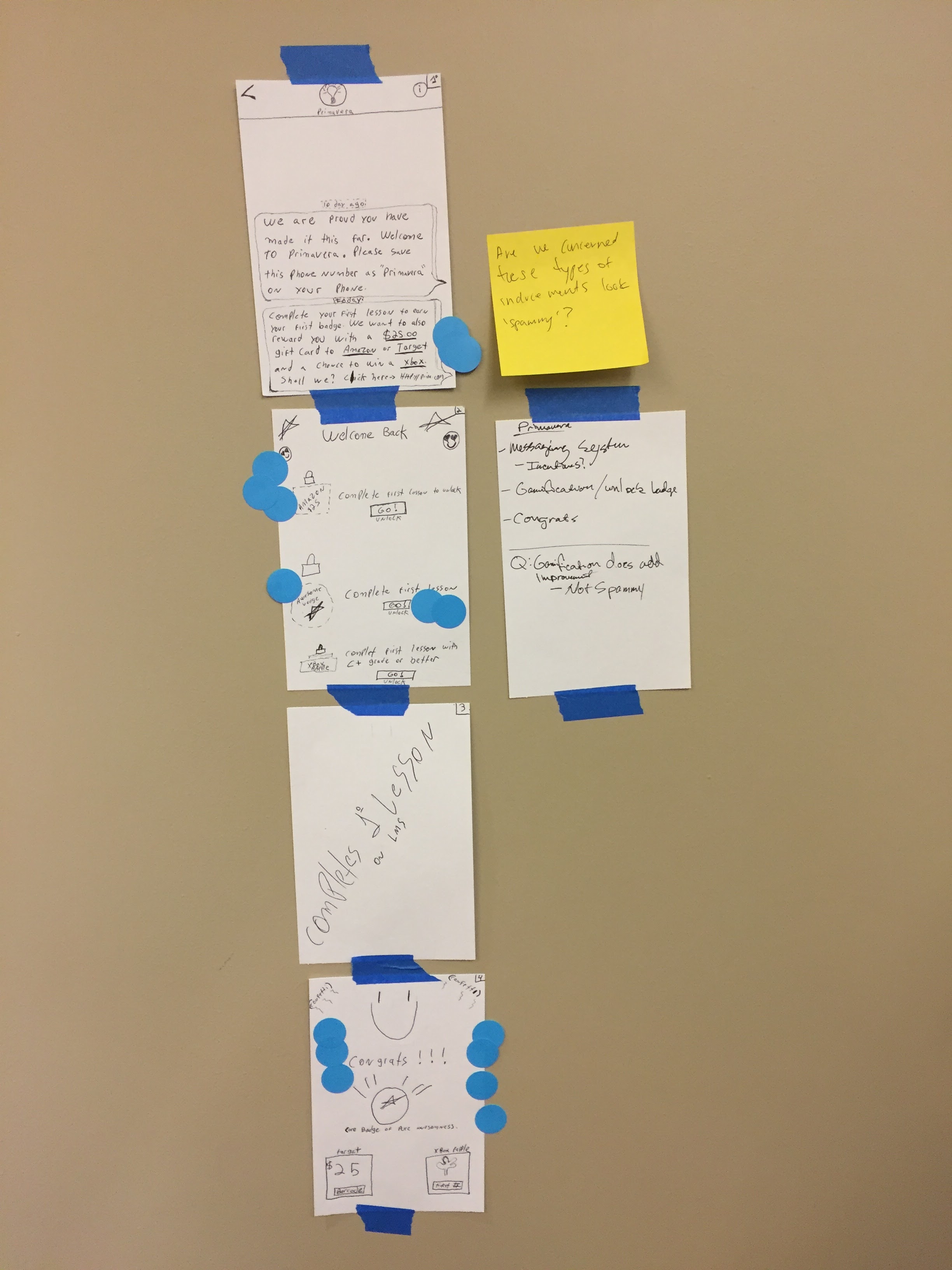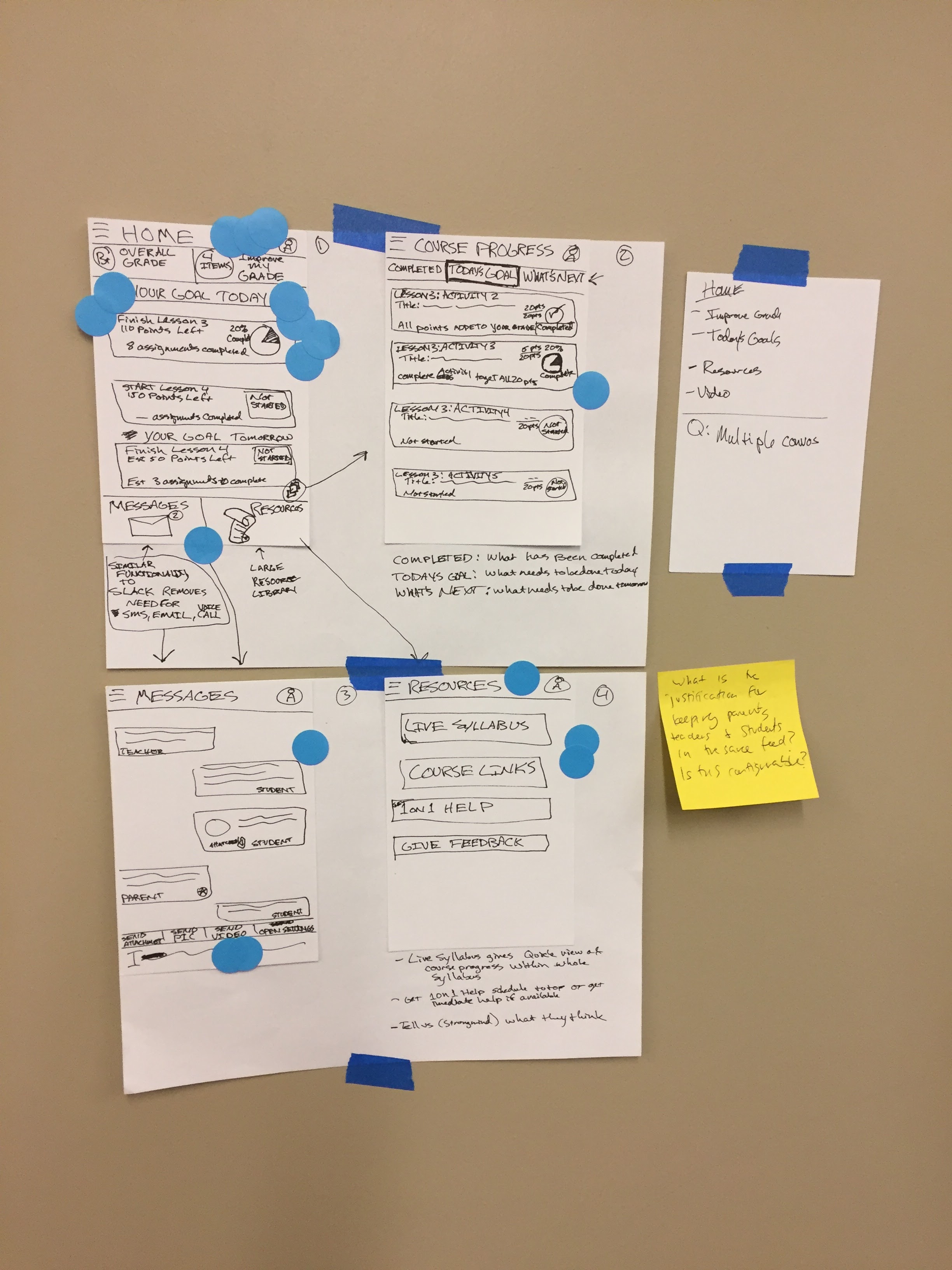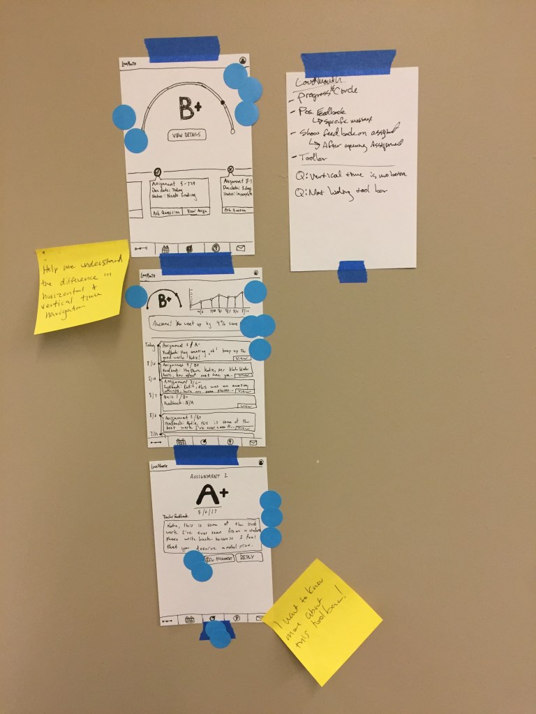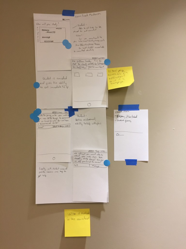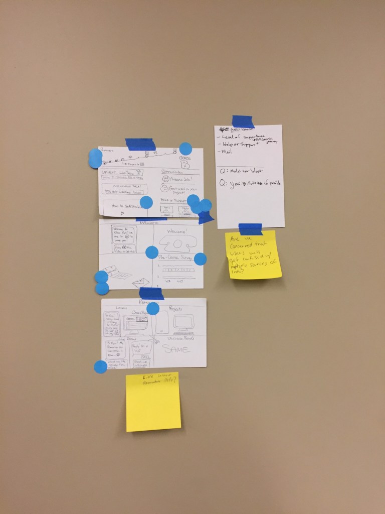Day 3: Design solutions. Everyone from designers to developers to managers came up with these designs and then specific elements were dot voted on and those elements were compiled into a prototype.